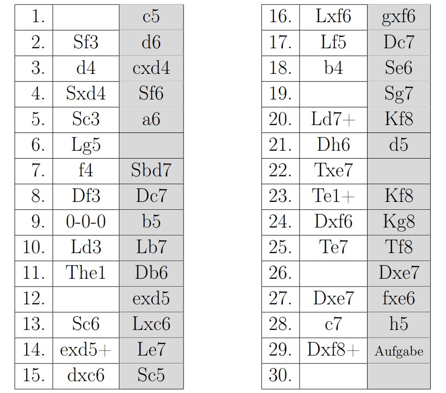 Leider sind einige Züge auf dem Partieformular verblasst. Welche Züge fehlen?